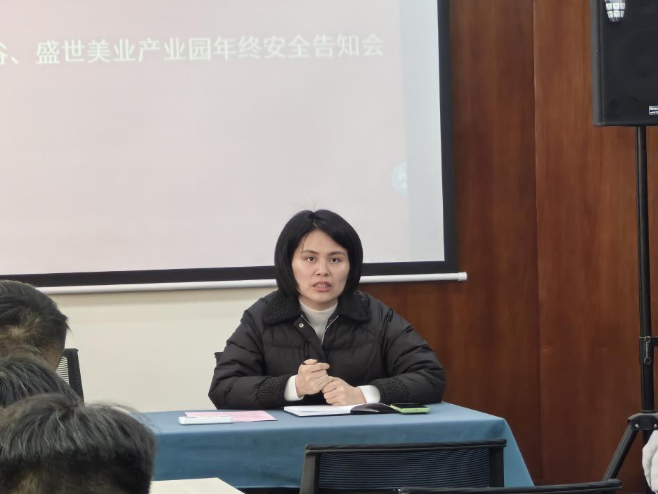 年终之际,为确保广大员工度过一个安全、祥和的新春佳节,1月26日,美创园、文谷、盛世美业产业园特此联合举办“安全大扫除 安心过大年”年终安全告知会。此次会议旨在提高企业的安全意识,确保春节期间员工的生产安全和人身安全。